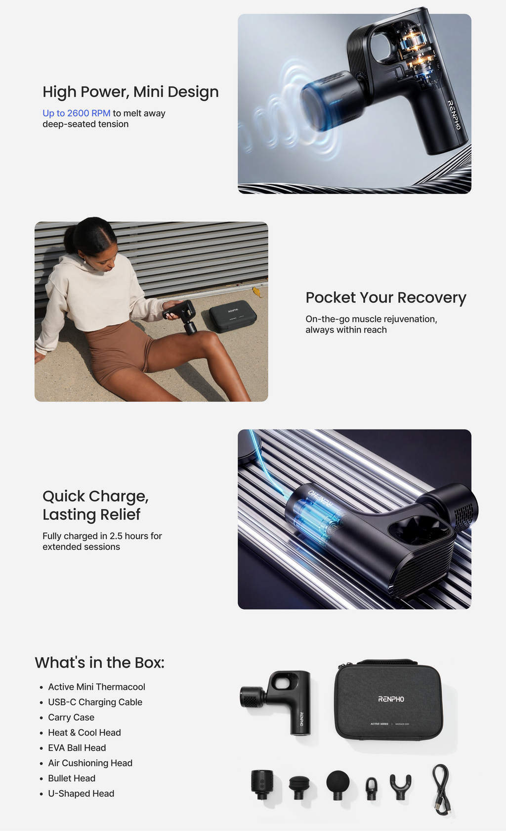 - • 5-speed percussion (1600–2600 RPM) with 8 mm amplitude